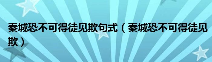 关于秦城恐不可得徒见欺句式,秦城恐不可得徒见欺这个很多人还不知道,今天菲菲来为大家解答以上的问题,现在让我们一起来看看吧!
