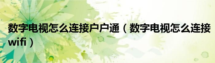 大家好,小晋来为大家解答以下问题,关于数字电视怎么连接户户通,数字电视怎么连接wifi很多人还不知道,今天让我们一起来看看吧!