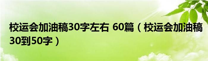 关于校运会加油稿30字左右 60篇,校运会加油稿30到50字这个很多人还不知道,今天菲菲来为大家解答以上的问题,现在让我们一起来看看吧!