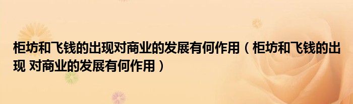 关于柜坊和飞钱的出现对商业的发展有何作用,柜坊和飞钱的出现 对商业的发展有何作用这个很多人还不知道,今天菲菲来为大家解答以上的问题,现在让我们一起来看看吧!