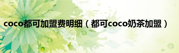 关于coco都可加盟费明细,都可coco奶茶加盟这个很多人还不知道,今天菲菲来为大家解答以上的问题,现在让我们一起来看看吧!