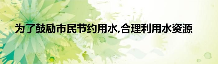 关于为了鼓励市民节约用水,合理利用水资源这个很多人还不知道,今天菲菲来为大家解答以上的问题,现在让我们一起来看看吧!