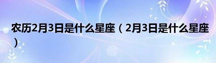 关于农历2月3日是什么星座,2月3日是什么星座这个很多人还不知道,今天菲菲来为大家解答以上的问题,现在让我们一起来看看吧!