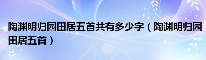 关于陶渊明归园田居五首共有多少字,陶渊明归园田居五首这个很多人还不知道,今天菲菲来为大家解答以上的问题,现在让我们一起来看看吧!