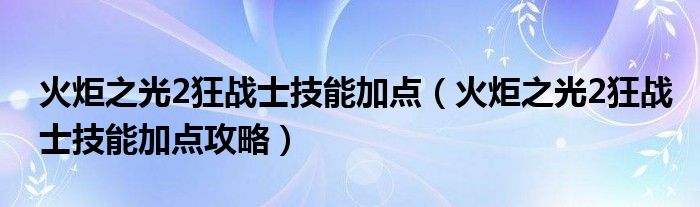 如何在火炬之光2中加点?狂战士,增加一些方法。相信很多玩家都知道在游戏中正确的加点可以大大提高角色的技能,也有很多玩家想知道在狂战士如何加点。下面小编给玩家一个在狂战士加分的方法。