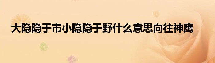 关于大隐隐于市小隐隐于野什么意思向往神鹰这个很多人还不知道,今天菲菲来为大家解答以上的问题,现在让我们一起来看看吧!