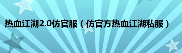 最佳答案关于热血江湖2.0仿官服,仿官方热血江湖私服这个很多人还不知道,今天菲菲来为大家解答以上的问题,现在让我们一起来看看吧!1、最接近官方的只有一个SF杨柳江湖20倍经验 50倍钱 50倍历练不卖会员东西只卖百宝阁的物品 和官方的东西完全一样卖的只是SF点卡 10块钱1000元宝百宝阁卖的东西需要的元宝...