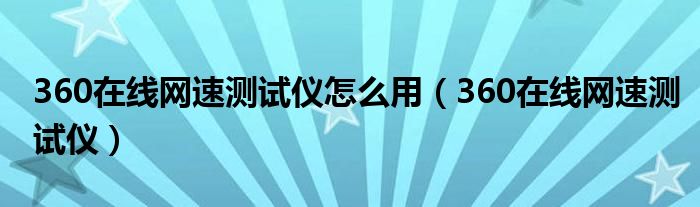 360在线网速测试仪怎么用(360在线网速测试仪)
