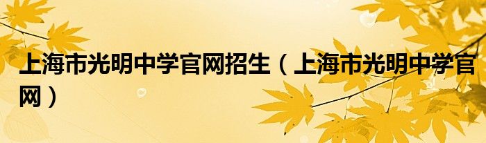 关于上海市光明中学官网招生,上海市光明中学官网这个很多人还不知道,今天菲菲来为大家解答以上的问题,现在让我们一起来看看吧!