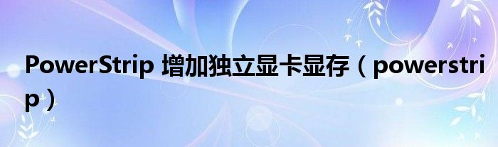 大家好,来宝来为大家解答以下问题,PowerStrip 增加独立显卡显存,powerstrip很多人还不知道,今天让我们一起来看看吧!