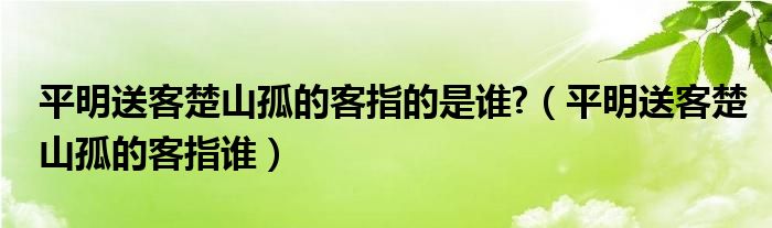 关于平明送客楚山孤的客指的是谁?,平明送客楚山孤的客指谁这个很多人还不知道,今天菲菲来为大家解答以上的问题,现在让我们一起来看看吧!