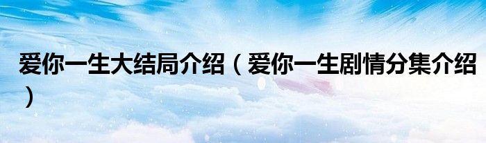 大家好,小晋来为大家解答以下问题,关于爱你一生大结局介绍,爱你一生剧情分集介绍很多人还不知道,今天让我们一起来看看吧!
