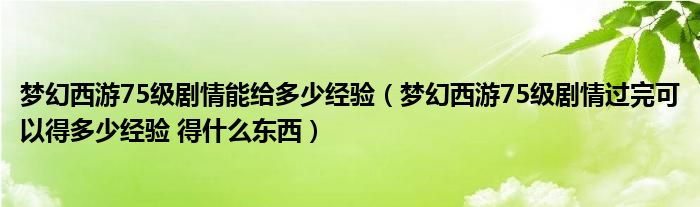 关于梦幻西游75级剧情能给多少经验,梦幻西游75级剧情过完可以得多少经验 得什么东西这个很多人还不知道,今天菲菲来为大家解答以上的问题,现在让我们一起来看看吧!