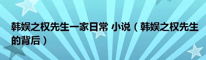 大家好,小晋来为大家解答以下问题,关于韩娱之权先生一家日常 小说,韩娱之权先生的背后很多人还不知道,今天让我们一起来看看吧!