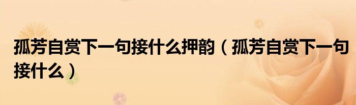 大家好,小晋来为大家解答以下问题,关于孤芳自赏下一句接什么押韵,孤芳自赏下一句接什么很多人还不知道,今天让我们一起来看看吧!