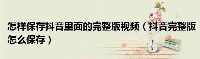 大家好,小晋来为大家解答以下问题,关于怎样保存抖音里面的完整版视频,抖音完整版怎么保存很多人还不知道,今天让我们一起来看看吧!
