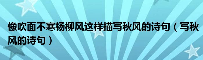 像吹面不寒杨柳风这样描写秋风的诗句(写秋风的诗句)