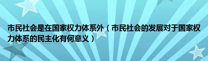 关于市民社会是在国家权力体系外,市民社会的发展对于国家权力体系的民主化有何意义这个很多人还不知道,今天菲菲来为大家解答以上的问题,现在让我们一起来看看吧!