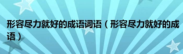 大家好,小晋来为大家解答以下问题,关于形容尽力就好的成语词语,形容尽力就好的成语很多人还不知道,今天让我们一起来看看吧!