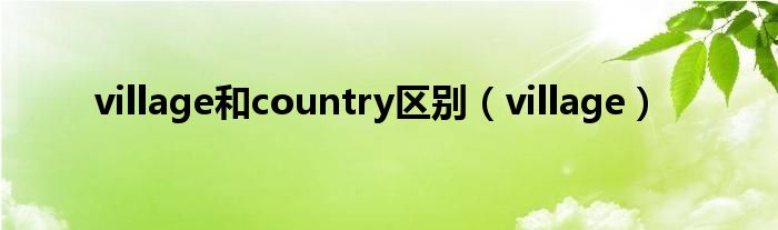 关于village和country区别,village这个很多人还不知道,今天菲菲来为大家解答以上的问题,现在让我们一起来看看吧!