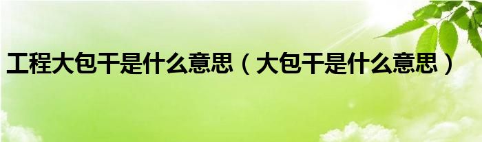 关于工程大包干是什么意思,大包干是什么意思这个很多人还不知道,今天菲菲来为大家解答以上的问题,现在让我们一起来看看吧!