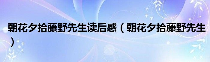 关于朝花夕拾藤野先生读后感,朝花夕拾藤野先生这个很多人还不知道,今天菲菲来为大家解答以上的问题,现在让我们一起来看看吧!