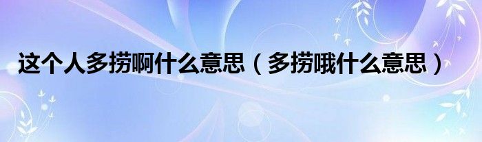 大家好,小晋来为大家解答以下问题,关于这个人多捞啊什么意思,多捞哦什么意思很多人还不知道,今天让我们一起来看看吧!