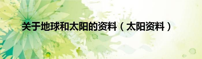 关于关于地球和太阳的资料,太阳资料这个很多人还不知道,今天菲菲来为大家解答以上的问题,现在让我们一起来看看吧!