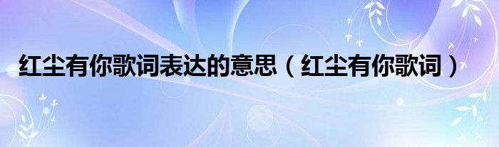 关于红尘有你歌词表达的意思,红尘有你歌词这个很多人还不知道,今天菲菲来为大家解答以上的问题,现在让我们一起来看看吧!